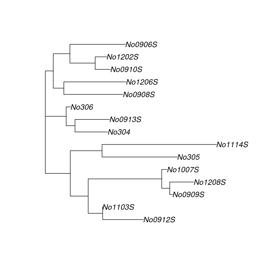 write.tree(tree.nj, file = "woodmouse_tree.txt")