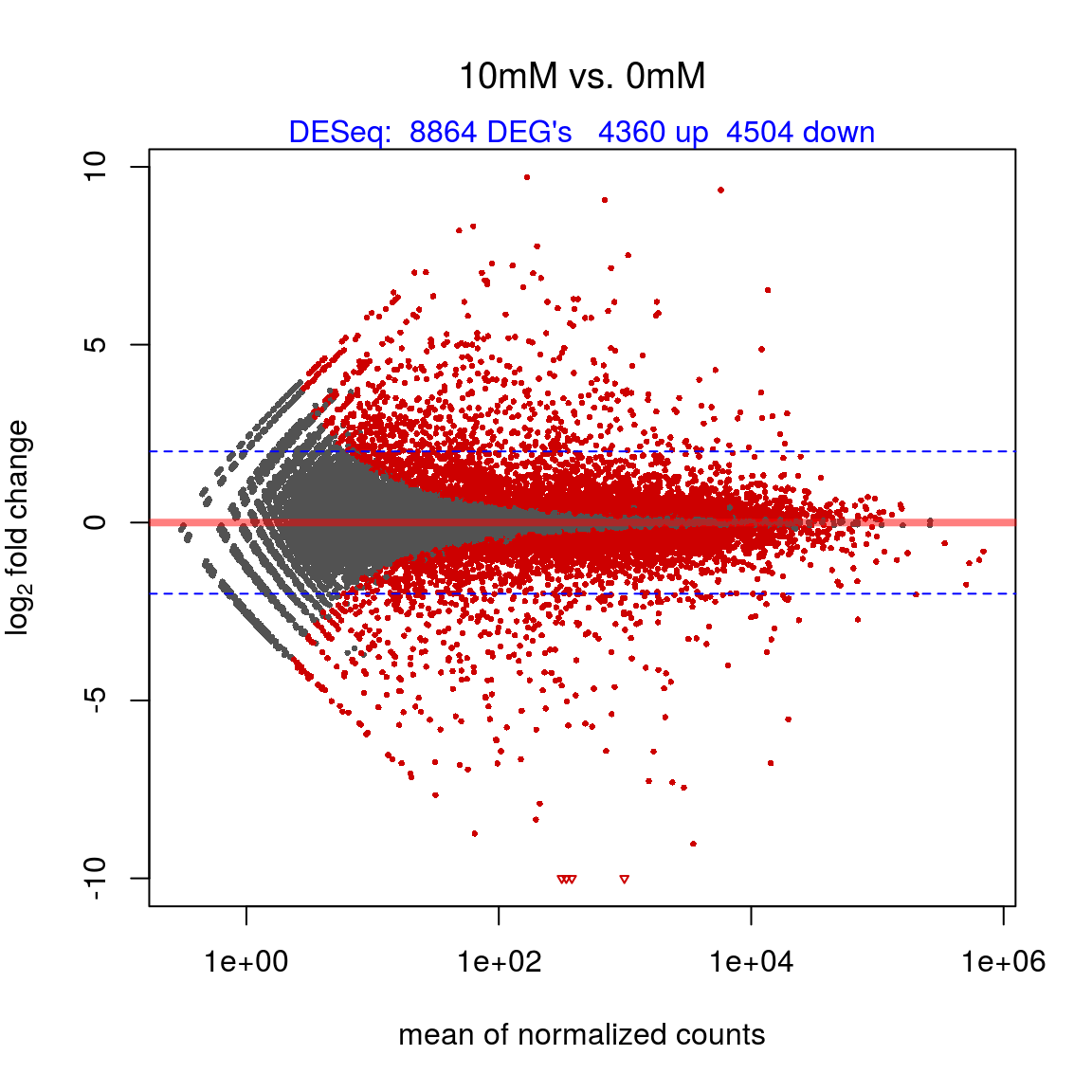 mtext(paste("DESeq: ", nr.deg, "DEG's ", nr.up, "up ", nr.down, "down"), side = 3, col = "blue")