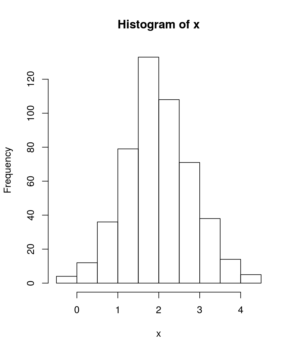 x = rnorm(500, mean = 2, sd = 0.8) # sample from normal distribution hist(x)