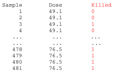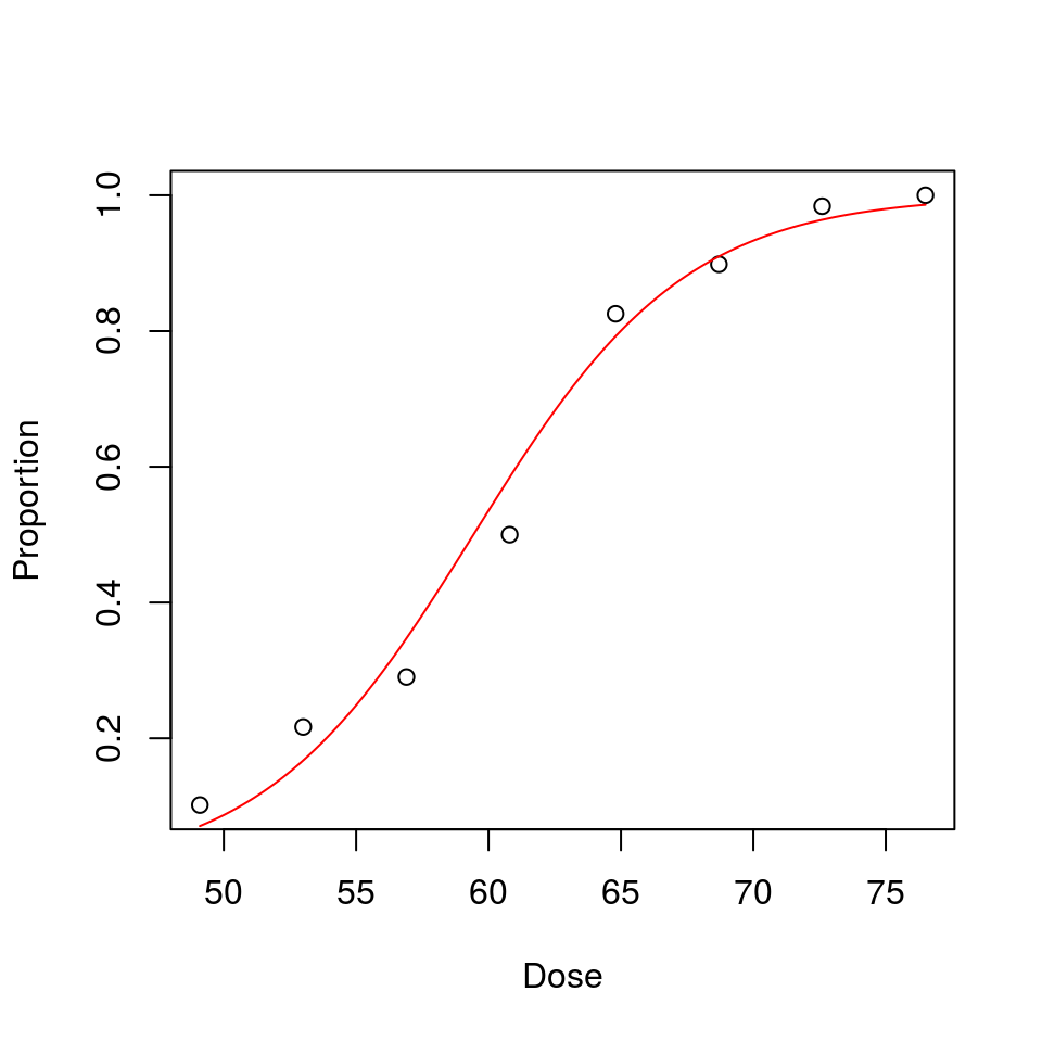 glm()Beetles data (for a given dosage of an insecticide: is beetle number x killed or not?):