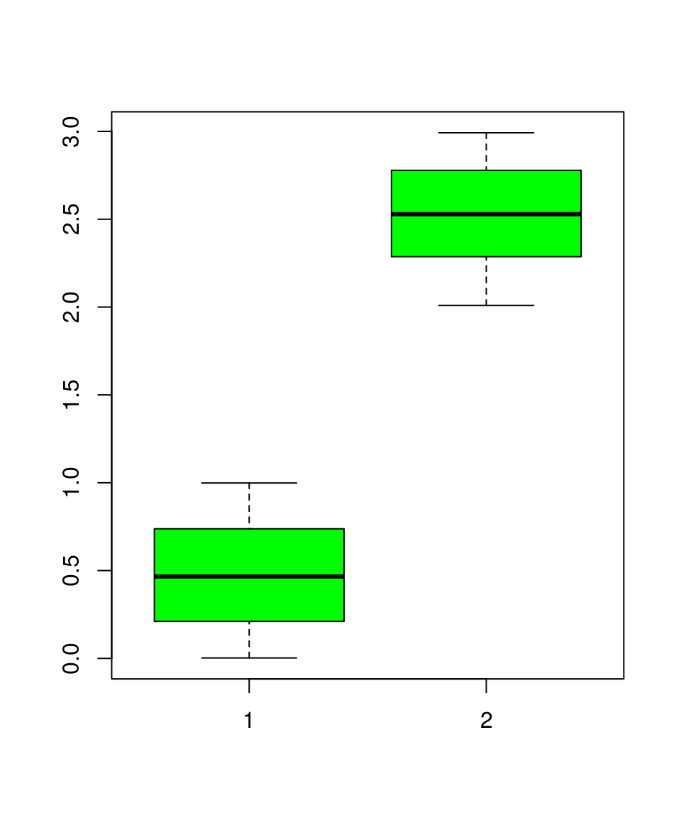 boxplot(x, y, col = "green")